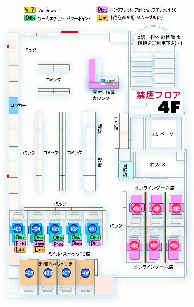 店内での歩きタバコはご遠慮願います。 3F、4Fは